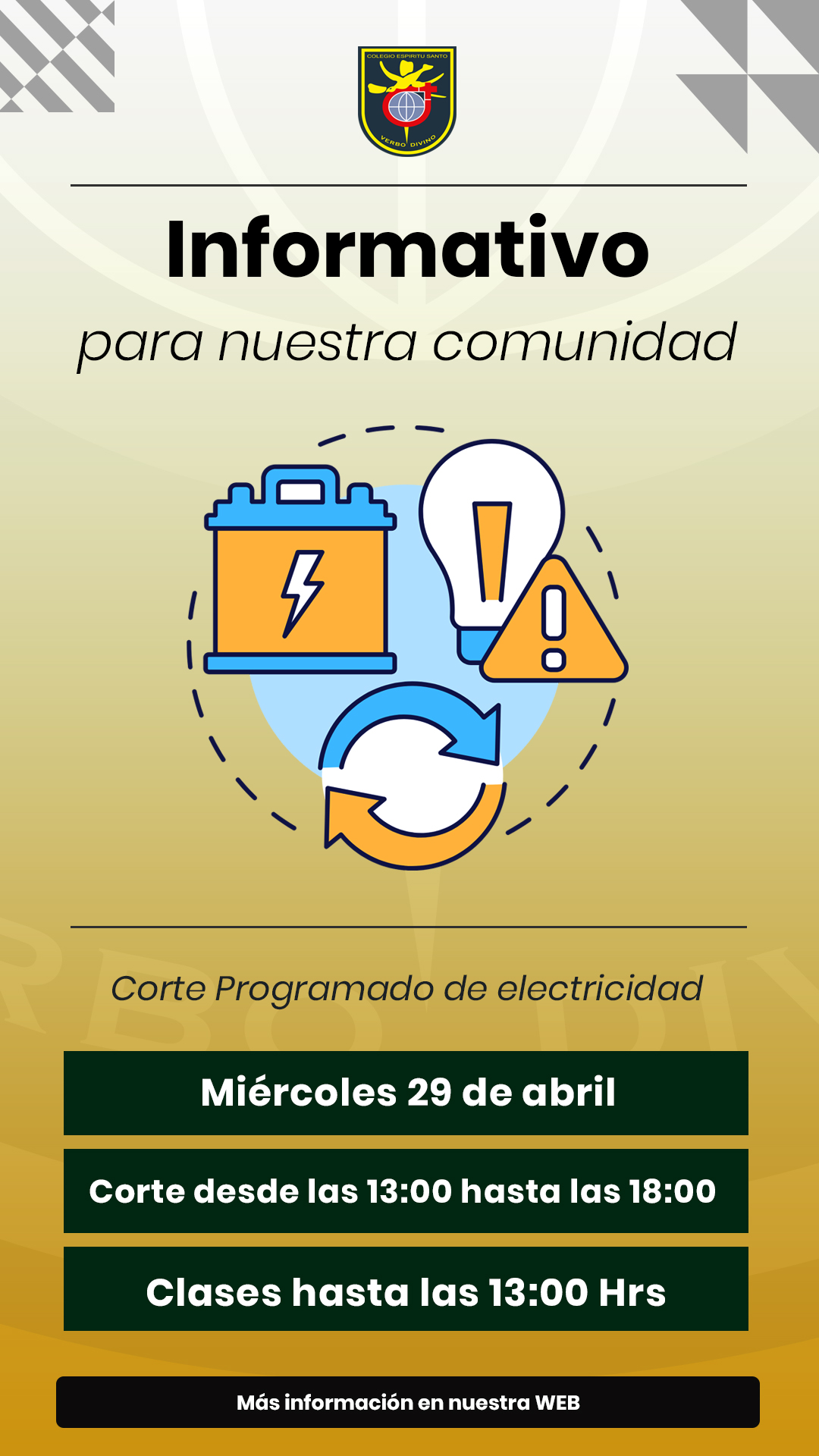 El motivo es un corte programado de electricidad en el sector, que se extenderá hasta las 18.00 Hrs del mismo día.